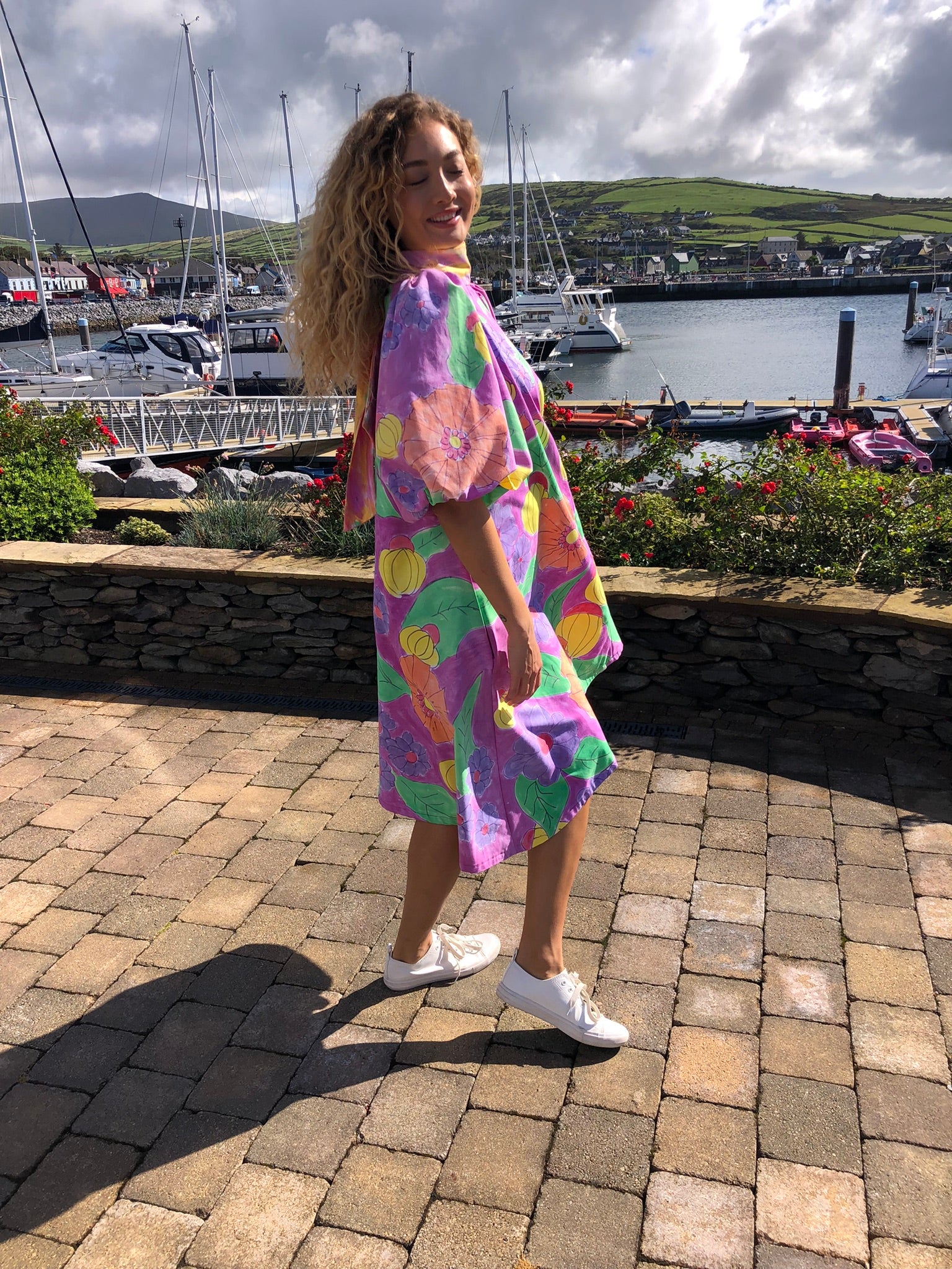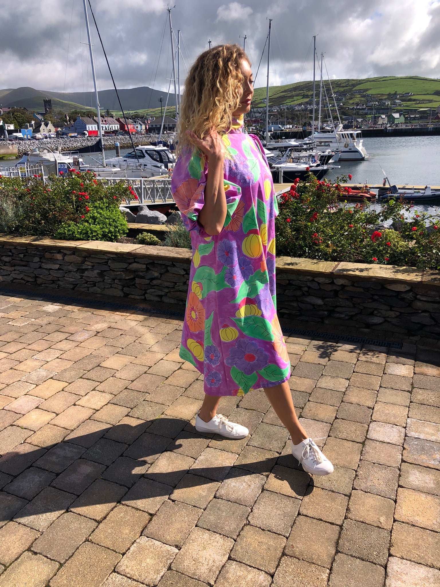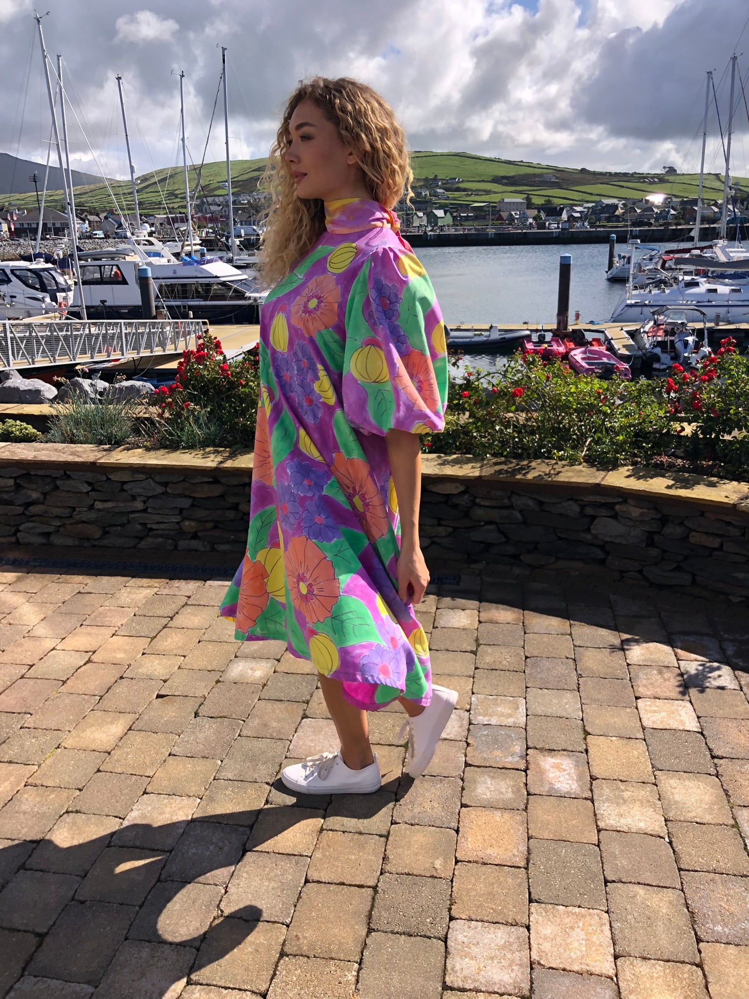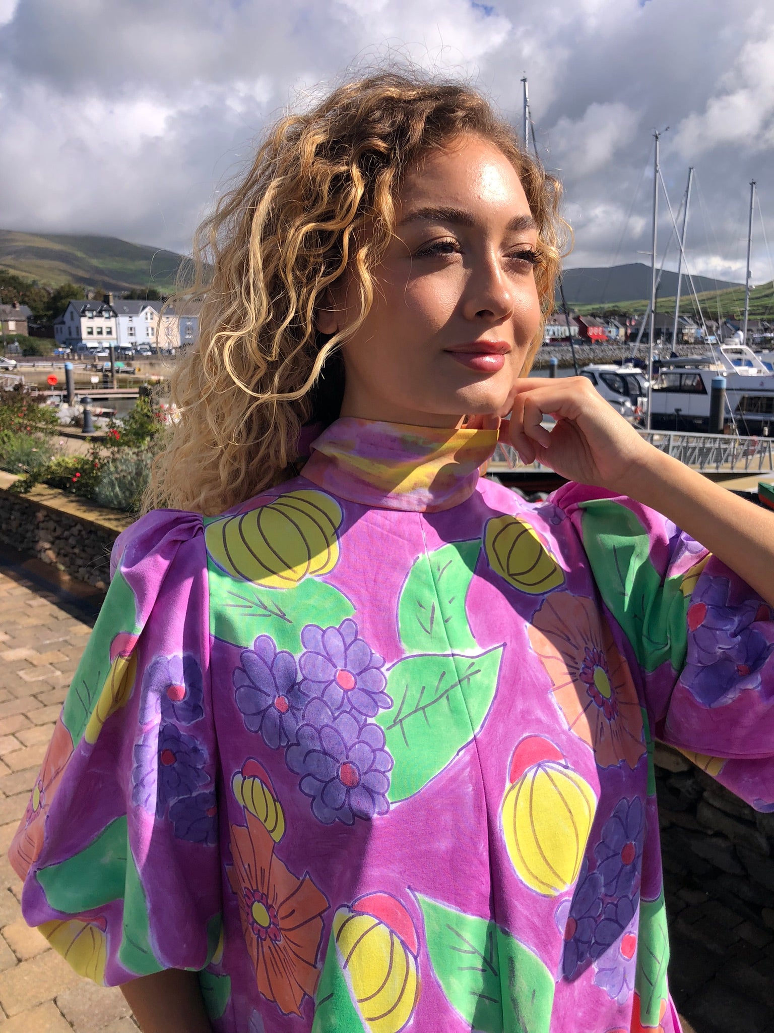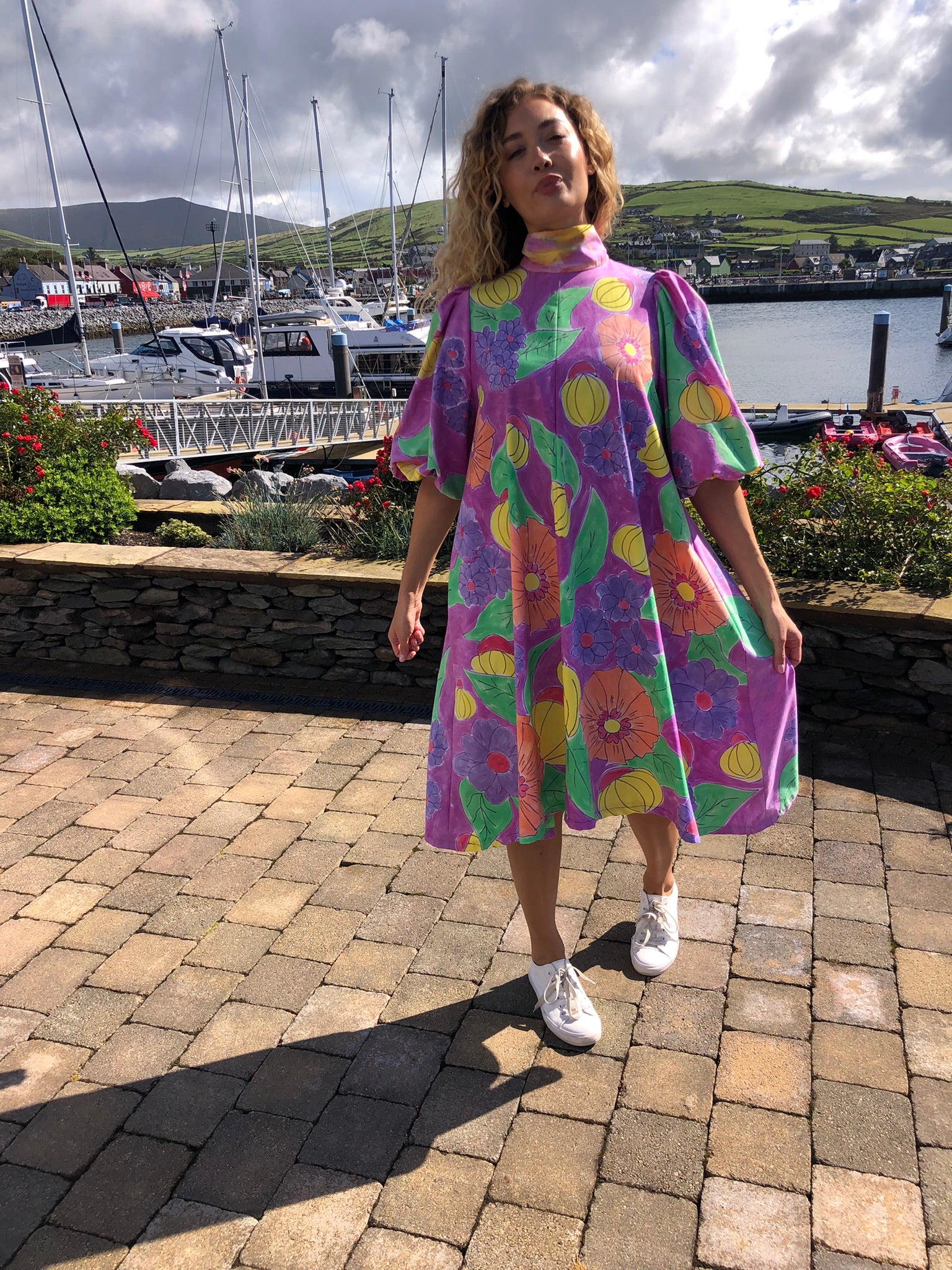A true statement piece, it balances playful artistry with timeless charm, making it perfect for summer gatherings, creative events, or simply brightening everyday style. Sustainably created and hand-finished in Dingle, this one-off design blends colour, craftsmanship, and circular fashion into something unforgettable.