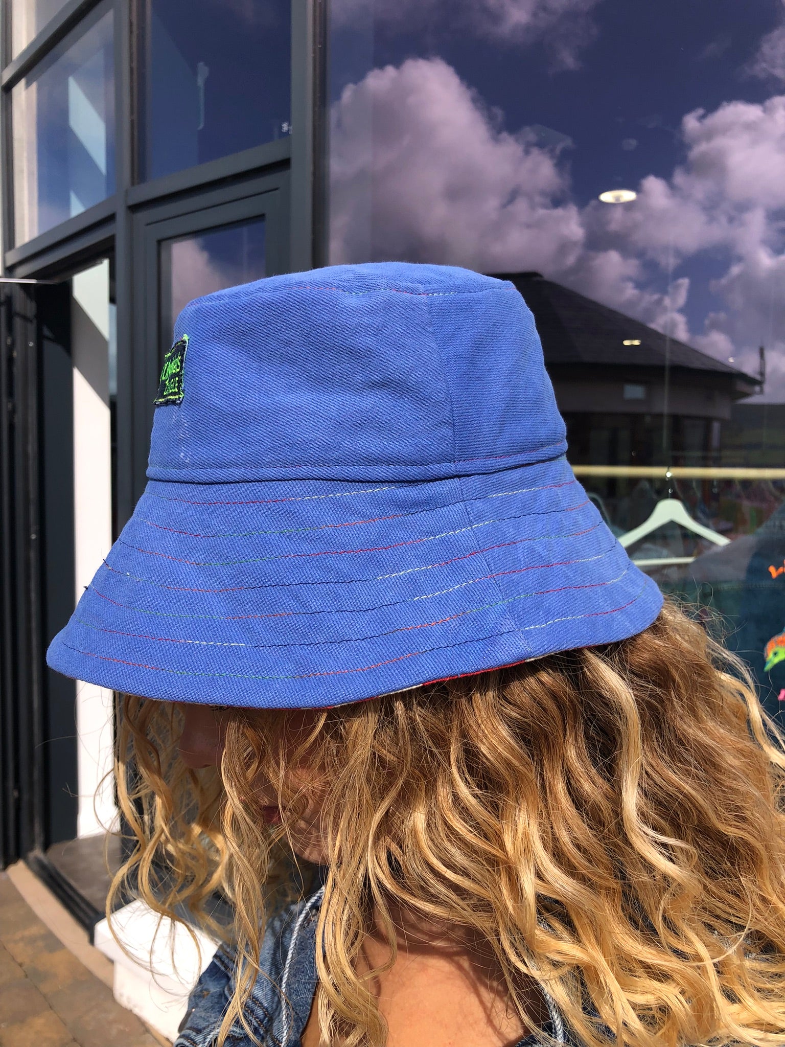 A one-of-a-kind reversible bucket hat that fuses timeless denim cool with bold sustainable design. One side is crafted from sturdy classic denim for an effortlessly casual look, while the other bursts with life in vibrant red-and-white upcycled fabric sourced from end-of-line textiles.